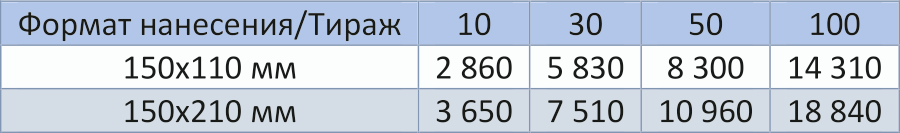 Формат до 420х300 мм.. Цена указана за 1 место печати. Каждое дополнительное место - х 1,7.