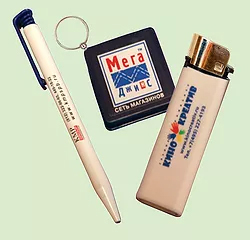 Печать на плоских и выпуклых изделиях из пластика и дерева: ручки, брелоки, зажигалки, часы, флешки