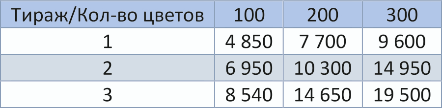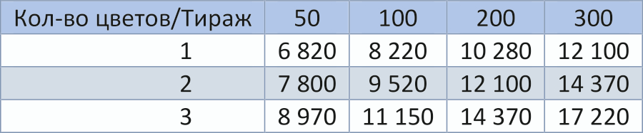 Другое количество цветов, другие размеры и тиражи рассчитываются по запросу.