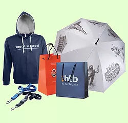 Печать на изделиях из пластика и ткани: ручки, футболки, бейсболки, толстовки, зонты